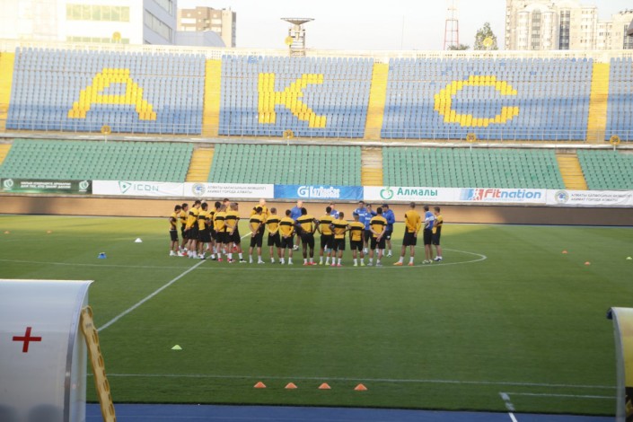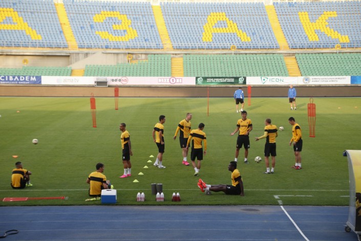 Ниже - фотографии тренировок "Кайрата" и "Бордо" на Центральном стадионе Алматы.