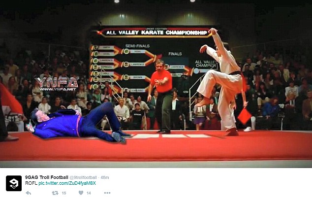 Демонстративное падение Луи ван Гала тут же стало мемом в социальных сетях. Пользователи Twitter отреагировали смешными картинками, обыгрывающими падение тренера. При этом фанаты шутят, что Ван Гал достоин "Оскара" даже больше, чем Леонардо ди Каприо.