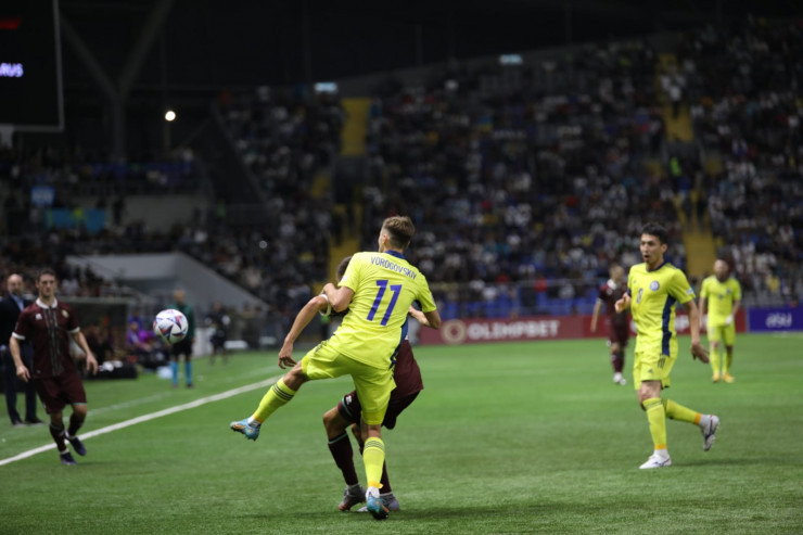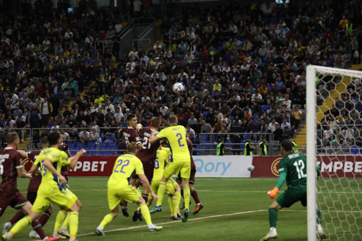 Игра в Астане завершилась со счетом 2:1. Казахстанцы открыли счет в матче суперголом Михаила Габышева.