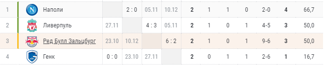 В другом матче группы "Наполи" на выезде сыграл вничью с "Генком" (0:0).