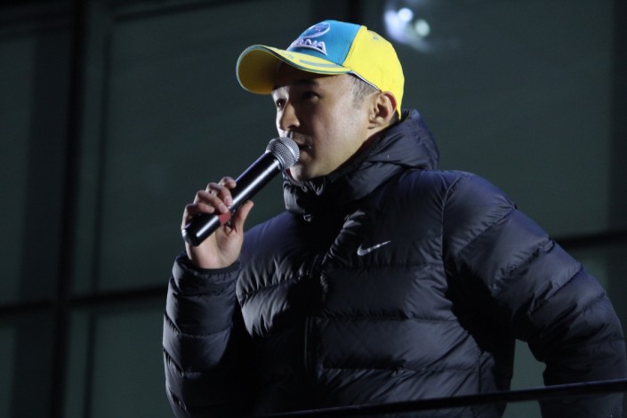 За игрой "Астаны" с кипрским АПОЭЛом столичные фанаты наблюдали на больших экранах "Казмедиацентра". Около трех тысяч болельщиков, несмотря на прохладную погоду и позднее время, собрались, чтобы вместе поддержать своих любимцев. Пришли поддержать команду аким Астаны Адильбек Джаксыбеков, олимпийский чемпион Александр Винокуров и актер Ануар Нурпеисов.