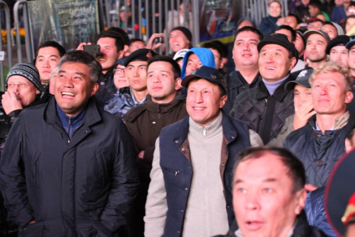 За игрой "Астаны" с кипрским АПОЭЛом столичные фанаты наблюдали на больших экранах "Казмедиацентра". Около трех тысяч болельщиков, несмотря на прохладную погоду и позднее время, собрались, чтобы вместе поддержать своих любимцев. Пришли поддержать команду аким Астаны Адильбек Джаксыбеков, олимпийский чемпион Александр Винокуров и актер Ануар Нурпеисов.