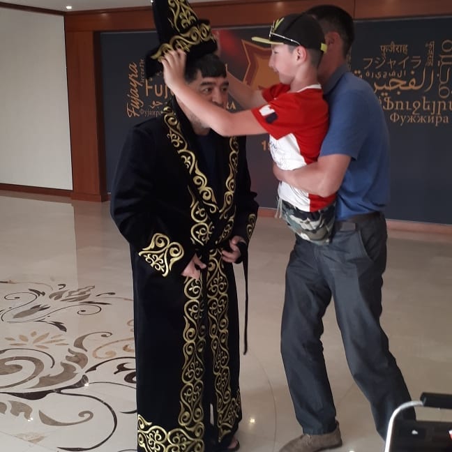 Семья родившегося без ног казахстанского мальчика Али Турганбекова подарила казахский чапан легенде мирового футбола Диего Марадоне. Али и Марадона встретились в ОАЭ, где аргентинец работает главным тренером клуба "Аль-Фуджайра".