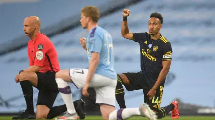 Футболисты "Манчестер Сити" и "Арсенала" во время матча 28-го тура английской премьер-лиги встали на одно колено в солидарность с движением Black Lives Matter ("Жизни темнокожих имеют значение"), передает Tengrinews.kz со ссылкой на Express.