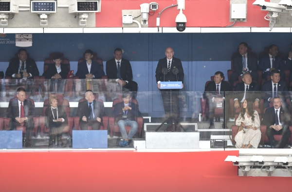 На церемонию открытия ЧМ-2018 в Москву приехали президенты стран СНГ и мировые лидеры - Александр Лукашенко, Шавкат Мирзиеев, Никол Пашинян, Ильхам Алиев, наследный принц Саудовской Аравии Мухаммед ибн Салман Аль Сауд и другие. Фото высоких гостей из VIP-ложи публикует агентство РИА Новости.