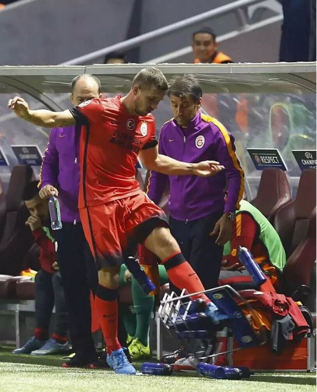 Форвард турецкого "Галатасарая" Лукас Подольски пнул ящик с водой после замены в матче второго тура группового этапа Лиги чемпионов с "Астаной", сообщают Vesti.kz.