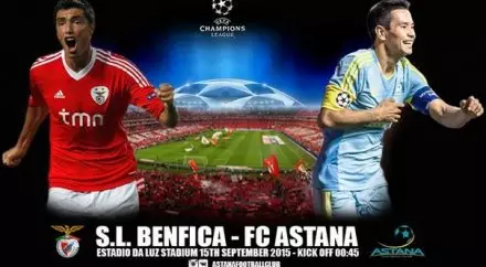 Матч группового раунда Лиги чемпионов между португальской "Бенфикой" и казахстанской "Астаной" в прямом эфире покажут в киноконцертном зале "Казмедиацентра", сообщают Vesti.kz.
