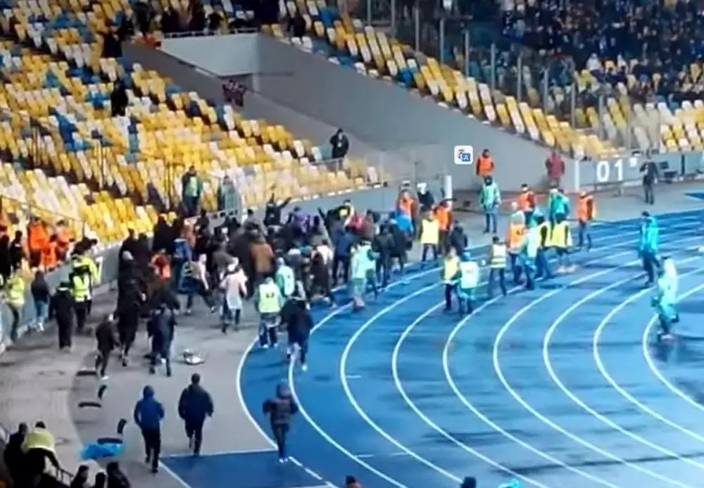 Фанаты киевского "Динамо" устроили беспорядки на футбольном матче 1/16 финала Лиги Европы, в котором их команда встречалась с французским "Генгамом". Матч, прошедший накануне в Киеве, едва не был сорван. Как сообщает Football.ua, конфликт разгорелся из-за недоразумения - украинские болельщики якобы перепутали французский флаг с российским.