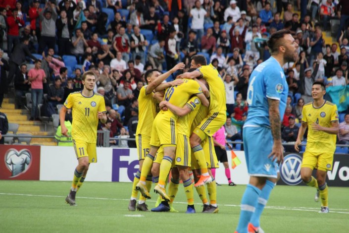 Cборная Казахстана по футболу разгромила Сан-Марино в домашнем матче отборочного цикла Евро-2020, передает Vesti.kz