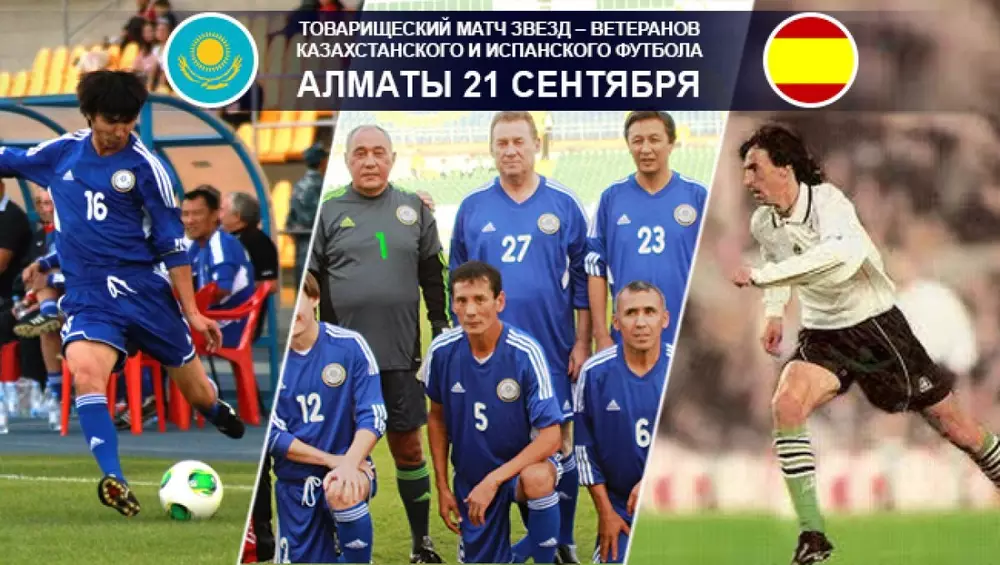 Встреча ветеранов футбола состоится 21 сентября на Центральном стадионе. Матч пройдет в рамках сотрудничества между ФФК и Королевской испанской футбольной федерацией. В качестве почетных гостей на матч приглашены Куралбек Ордабаев, Михаил Гурман, Виктор Катков, Александр Мазманьян, Юсуп Шадиев, Виктор Абгольц и другие ветераны казахстанского футбола.
