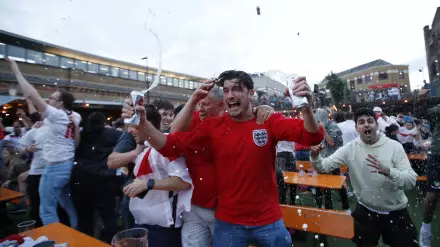 Второй полуфинал Евро-2020: где смотреть матч Англия - Дания Болельщики сборной Англии радуются победе над командой Украины / REUTERS