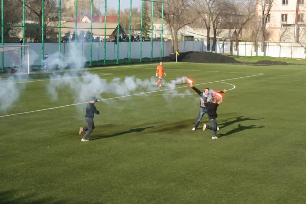 Во время второго тайма матча между командами "Акжайык" и "Актобе", который проходил 15 апреля в Уральске, трое представителей актюбинского фан-клуба выбежали на поле с факелами в руках. Полицейским пришлось "играть" с ними в догонялки. В итоге матч был прерван на пять минут.