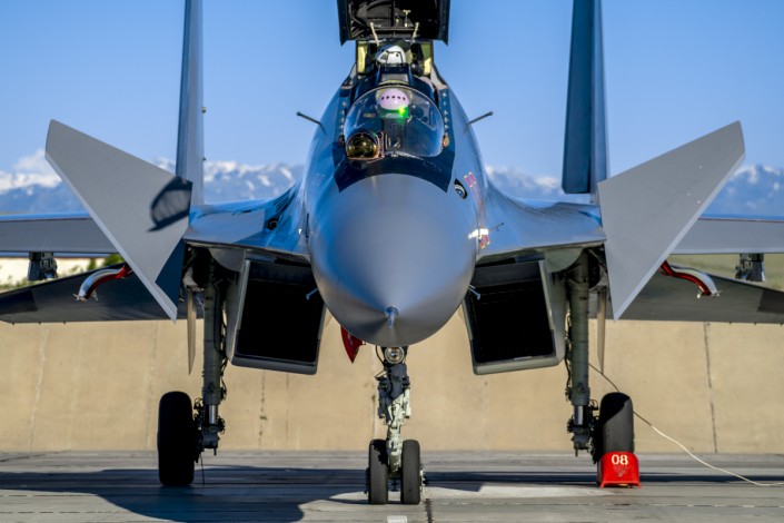 Во время учебно-тренировочных полетов пилоты набирают высоту до девяти тысяч метров. Су-30СМ поднимается на высоту 12 тысяч метров.