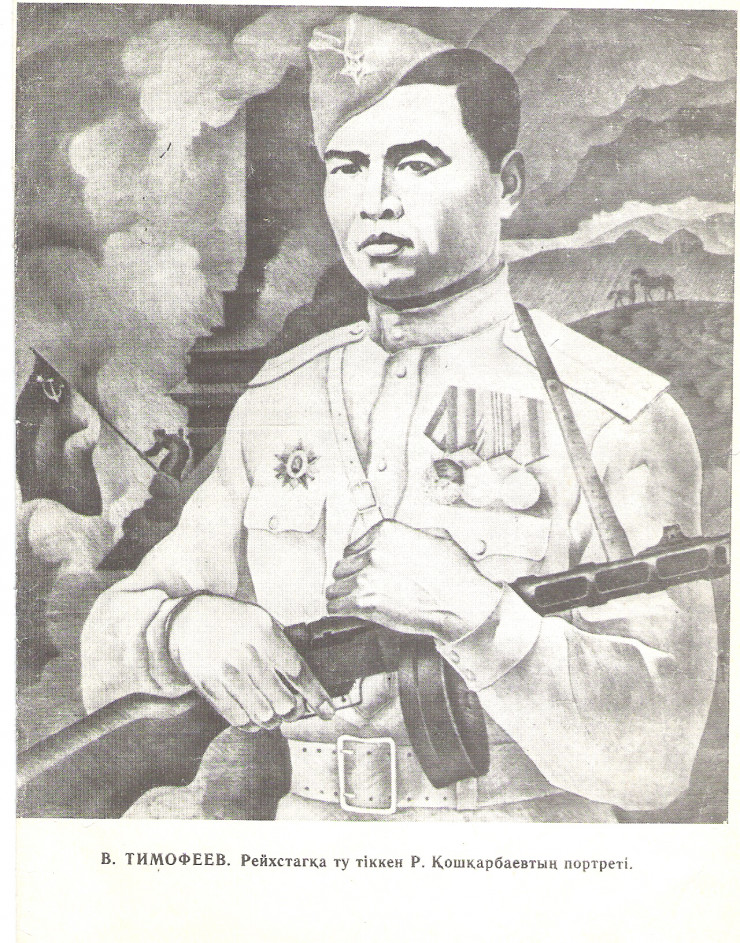 Рахимжан Кошкарбаев уже тогда был известным в Алма-Ате человеком, однако многие его знакомые даже не подозревали, что общаются с воином, установившим знамя победы над Рейхстагом. Стоит отметить, что первый материал о подвиге был напечатан еще 3 мая 1945 года в газете "Воин Родины" - печатном органе дивизии, в которой служил Рахимжан Кошкарбаев. Вся первая полоса была отдана под знаменитый приказ Верховного Главнокомандующего о падении Берлина, капитуляции и пленении 70 тысяч немецких солдат и офицеров. На второй странице в материале неизвестного автора под рубрикой "Они отличились в бою" говорилось: "Советские богатыри, лучшие сыновья народа. Об их выдающемся подвиге напишут книги, сложат песни. Над цитаделью гитлеризма они водрузили Знамя Победы. Запомним имена храбрецов: лейтенант Рахимжан Кошкарбаев, красноармеец Григорий Булатов. Плечом к плечу вместе с ними сражались другие славные воины: Проваторов, Лысенко, Орешко, Пачковский, Бреховецкий, Сорокин".