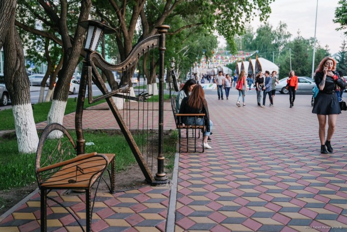 Творческую атмосферу центру правого берега добавляют и фонари-музыканты. Благодаря необычным инсталляциям, по словам акима района Сарыарка Армана Турлубека, эта улица получила название "Мелодия света".