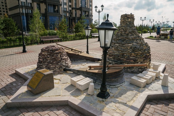 Улытау - это величественные курганы, некрополи, мавзолеи бегазы-дандыбаевской культуры, наскальные рисунки, петроглифы, шахты, металлургические печи, в которых выплавлялись медь, олово, серебро, золото. Создатели этой аллеи попытались воссоздать и передать частичку Улытау и в Астане.