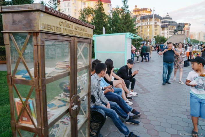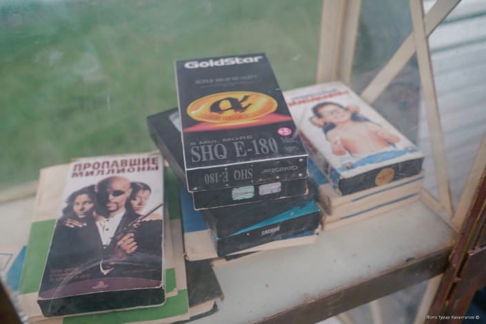 В этом году шкафчик на набережной пополнился еще и кассетами VHS, которые были популярны в Казахстане в 90-е годы.