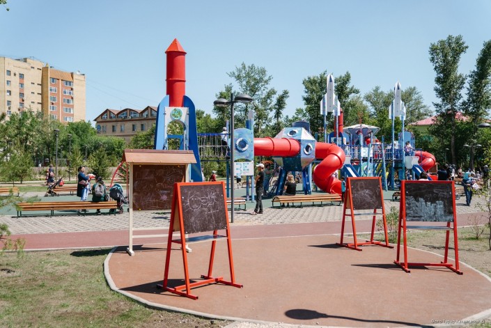 Еще один сквер появился на правом берегу, в районе пересечения проспектов Женис и Богенбай батыра.