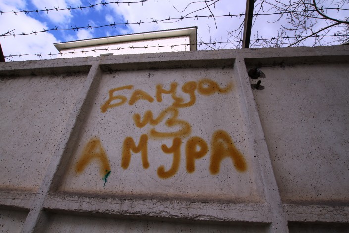 Наверняка многие, прочитав это, вспомнят песню "Мурка", которая так и начинается: "Прибыла в Одессу банда из Амура...". Как известно, есть несколько вариантов текста этой песни, но один из самых популярных носит, так сказать, уголовный окрас. Учитывая это и глядя на бетонный забор и колючую проволоку, можно подумать, что это фото сделано возле исправительного учреждения.