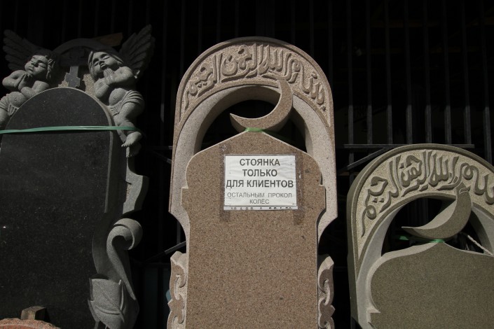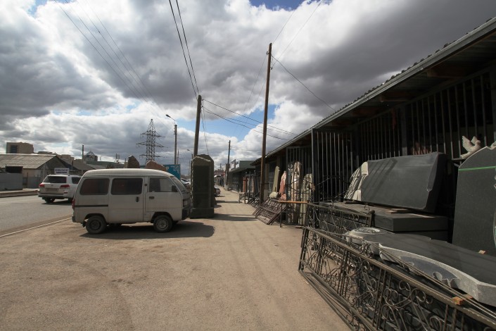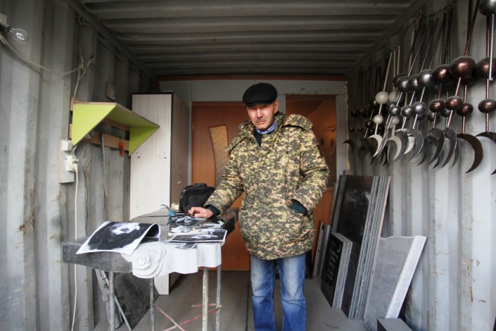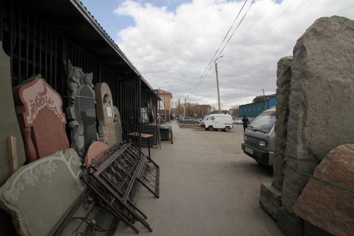Такой цех по изготовлению памятников на этой улице не один. Подобные фирмы здесь чуть ли не на каждом шагу. Сами бизнесмены называют разные цифры: говорят, в одном квартале работают от 15 до 30 предприятий.