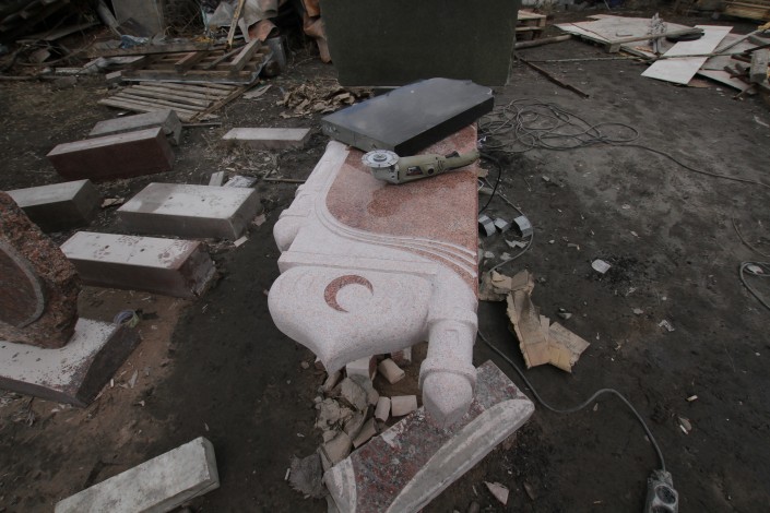 Как можно догадаться, здесь располагается цех по изготовлению могильных памятников.