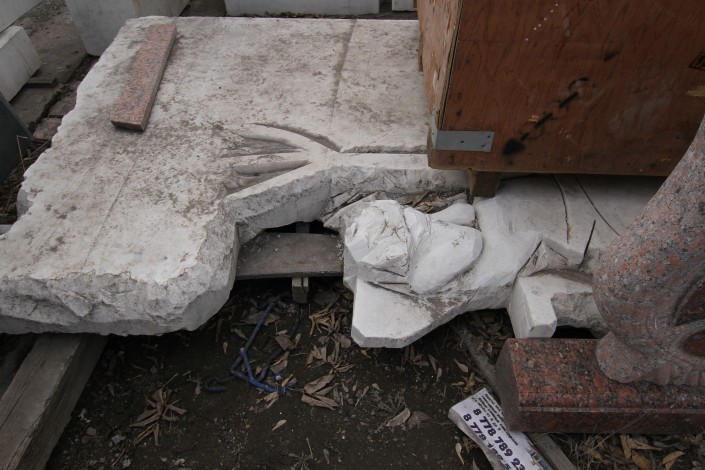 "Скульптура ангел, такие заказывают в основном для детей", - говорит молодой человек по имени Аман. У них с братом в этом районе сразу две мастерские. Одной заведует он.