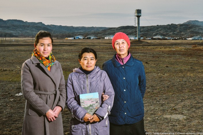 "Плюс нашего поселка в том, что у нас свет постоянно есть, ведь бывают же такие села, где совсем света нет. А минусы в том, что сети нет и дома культуры нет", - говорит социальный педагог и учитель казахского языка Акбота Тажигулова (на нижнем фото в центре).
