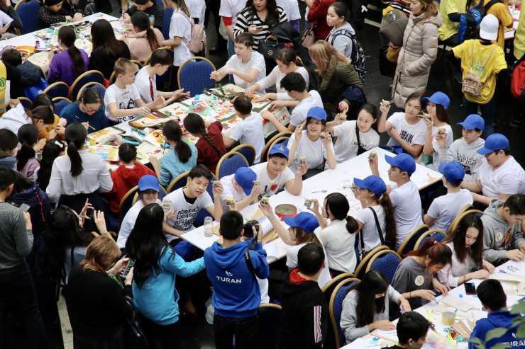 "Я сама обучаюсь в школе искусств, и сегодня мы вместе с детишками рисуем на дисках витражными красками. Своими поделками мы показываем людям, что можно сделать из отработавших вещей, а не выбрасывать их. И конечно, мы рассказываем детям о том, как правильно сортировать ТБО и почему это очень важно", - рассказала волонтер Райхан.