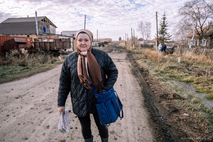 Через всю эту грязь к адресатам пробирается местный почтальон. Поселок она обходит пешком. Сегодня нужно занести жителям несколько новых писем и стопку газет.