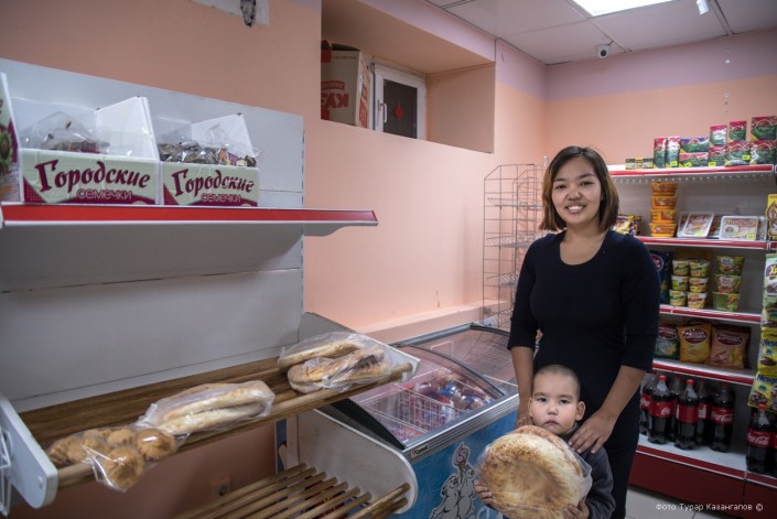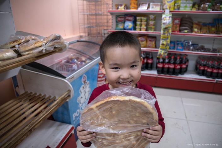 "Мы когда открывали магазин, то сразу решили, что раз в неделю мы будем делать хлеб бесплатным. Любой желающий в пятницу может взять у нас к своему столу хлеб бесплатно", - рассказывает хозяйка магазина Таншолпан.