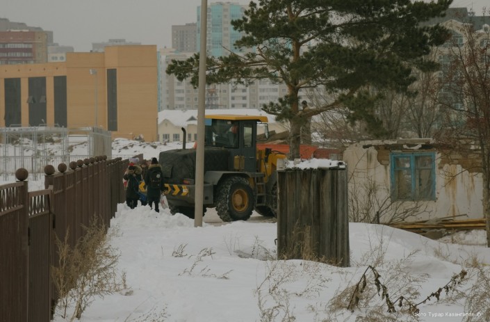 Дети идут на учебу и возвращаются с нее прямо в непосредственной близости от работающей спецтехники.
