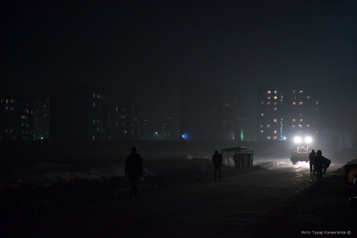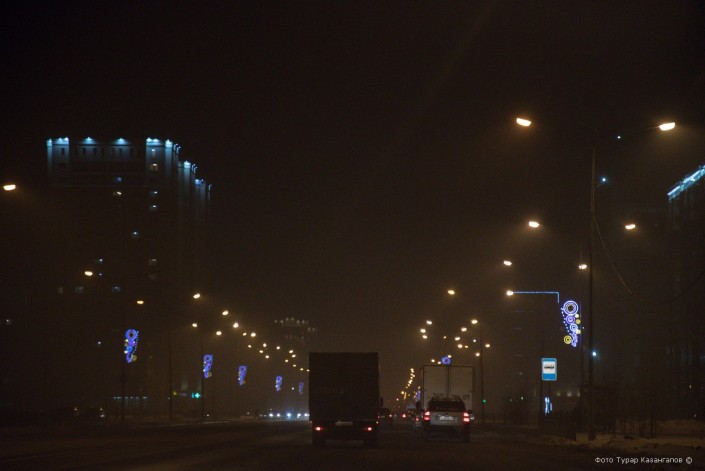 В безветренную погоду в частном секторе на юго-востоке Астаны стоит смог. Во время него и днем-то видимость не очень, а вечером здесь вообще ничего не разглядеть.