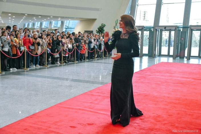 Салтанат Серкебаева была выбрана на роль 15-летней Томирис. По красной дорожке Салтанат прошлась вместе со своей мамой, которая не скрывала волнения.