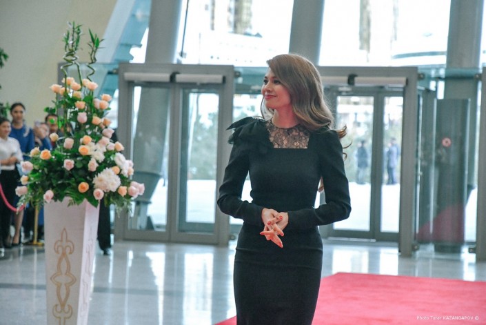 Когда в зале появилась спикер Сената Дарига Назарбаева, погас свет и началось кино.