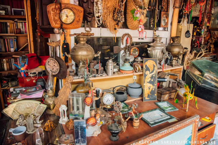 "Я здесь торгую уже третий год, — рассказывает Жанболат Байгалиев, мы тут вместе с напарником Аспандияром работаем. В основном приходят те, кому за 40-50, говорят, могут что-то купить ради воспоминаний об отце или деде. Людям интересна продукция из фарфора, бронзы, винтажные вещи. А сам я по профессии юрист, но семь лет назад мне попался на глаза советский значок, и я заинтересовался. Теперь вы сами видите, до каких масштабов все разрослось.