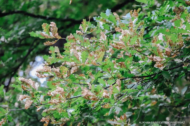 Еще в Алматы последние два-три года распространяется болезнь дубовый минер, она завезена из других стран. Это когда изнутри листья съедают черви. Если не проводить вовремя обработку, то в течение нескольких лет деревья начинают ослабевать.