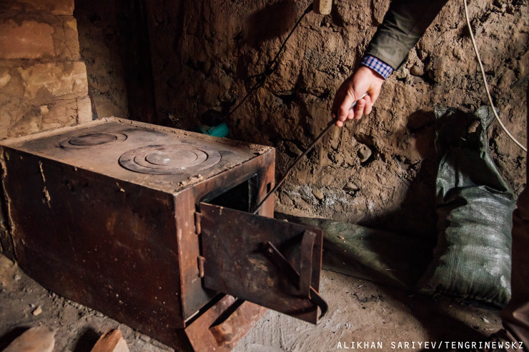 "А печку чем топите?" - спрашиваем. "Углем, конечно. Здесь все углем топят. Чтобы подключить газ, нужно согласие как минимум тридцати семей, а здесь столько не наберется. К тому же само подключение обойдется примерно в двести тысяч тенге, а это не всем по карману. У меня, к примеру, жена работает поваром в столовой, детей не с кем оставить, поэтому я без работы сижу, а пособие на детей — чуть больше сорока тысяч тенге".