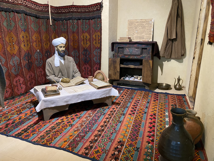 Если обратите внимание на человека впереди каравана, то можно заметить его сходство с аль-Фараби. Гиды же объясняют сходство тем, что в те времена стиль одежды и головной убор выглядели именно так.
