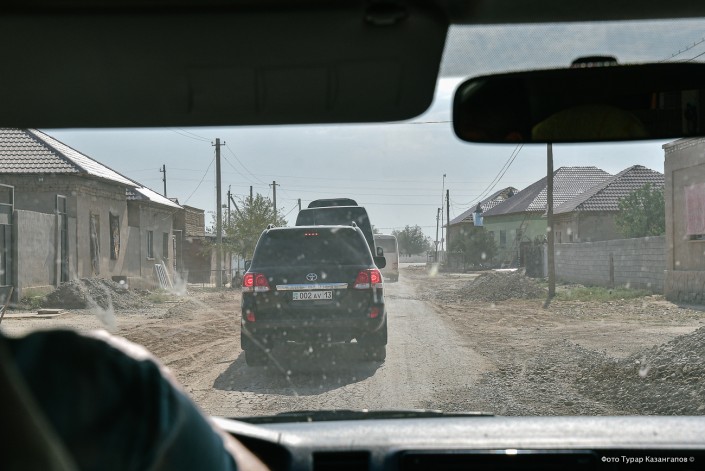 Премьер с министрами садятся в микроавтобус и уезжают дальше - в город Туркестан. Там им будет еще жарче.