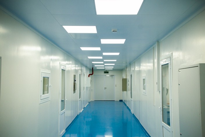 Санпропускник - это лишь первая часть многоступенчатой системы обеспечения чистоты в производственной зоне. Мы будем идти дальше - будет меняться цвет пола: чем темнее - тем выше класс чистоты помещений. А еще будет усиливаться фильтрация воздуха - здесь используются HEPA-фильтры.