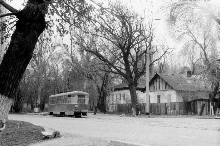Опытный фотограф с улыбкой вспоминает время, когда он впервые ездил на трамвае в Алматы: "Для нас это было что-то новое. Зашел в трамвай. Там встречает кондуктор с рулонной веревкой. Билет - 3 копейки. Трамваи были с деревянными дверями, иногда они не закрывались. Опаздывающие на ходу запрыгивали в трамвай и даже спрыгивали из него".