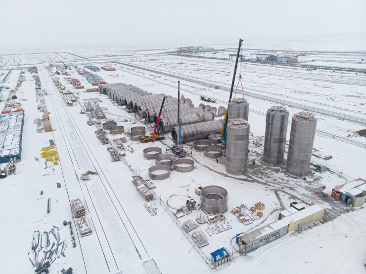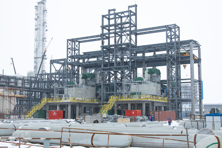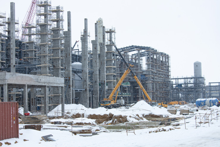 Это будущая установка по производству пропилена. Технологи ее называют установкой дегидрирования пропана. Сырьем является пропан. Он будет поставляться железной дорогой и перерабатываться на установке с получением пропилена. Сейчас ведется монтаж технологического оборудования.