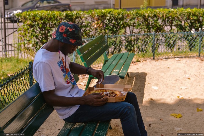 Можно взять пиццу и пообедать в ближайшем сквере.