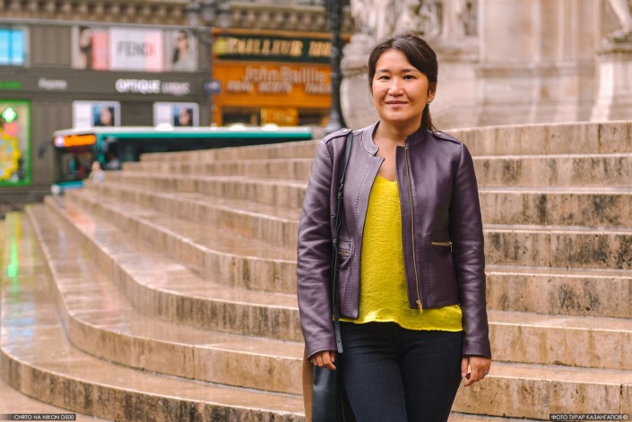Она живет в Париже уже четыре года. Приехала во Францию по стипендии Болашак, прошла стажировку, нашла работу, вышла замуж и так и осталась здесь. Айгерим - профессиональная пианистка, в настоящее время преподает в консерватории в пригороде Парижа. Вместе со своей коллегой, тоже казахстанкой, она организовала Центр казахской культуры во Франции "Коркыт".