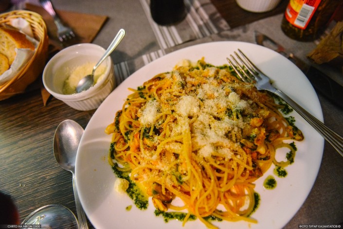 Еда в итальянском ресторане в центре Парижа. Тарелка пасты с морепродуктами - 13 евро (более 5 000 тенге).