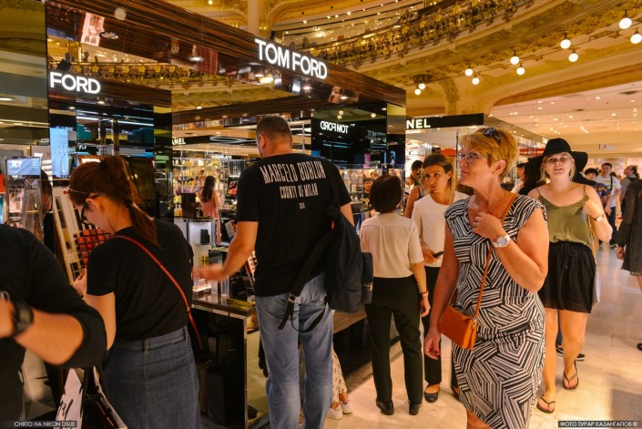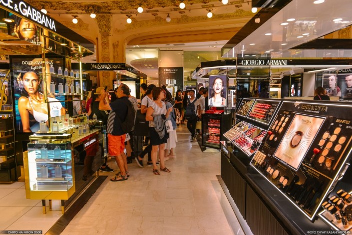 Это своего рода храм материальных ценностей. От большого количества модных духов, одежды и прочих брендовых вещей кружится голова. Кажется, что этажам с платьями, сапогами и украшениями нет конца.