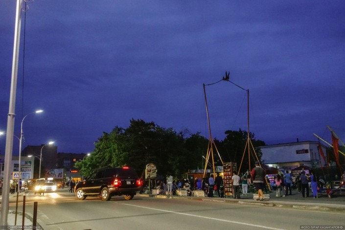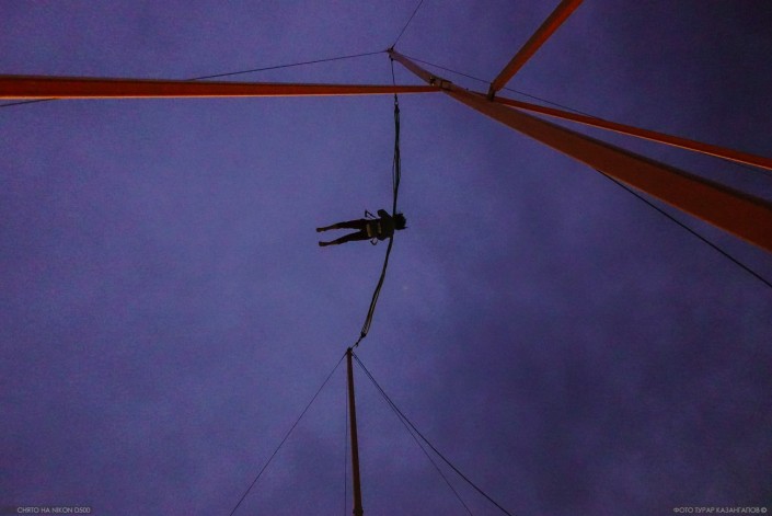"Ой, мамочка!" - успевает сказать девушка за миг до того, как натянутая резинка подбрасывает ее высоко вверх. За это сомнительное удовольствие нужно заплатить 1 000 тенге.