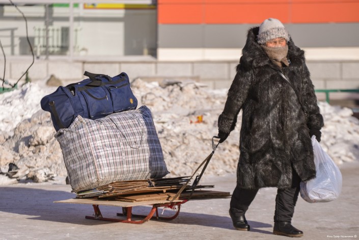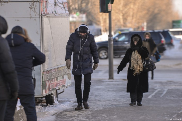 На вопрос, как ему столичные морозы, мужчина одобрительно кивнул, коротко ответив, что ему такая погода нравится. И, пожалуй, это была первая и единственная компания, которую мы встретили за весь день, настроенная к морозам более-менее оптимистично.