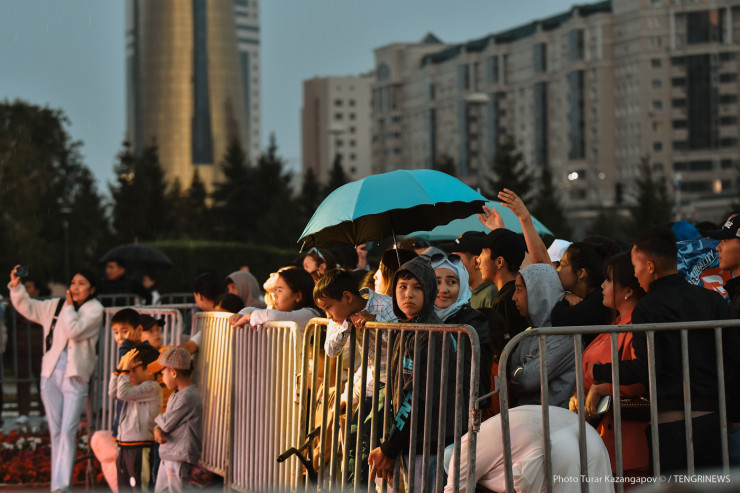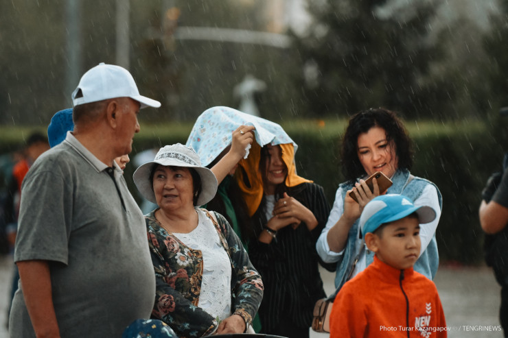 Однако, как и следовало ожидать, привыкших к перемене погоды астанчан это не остановило. Развернув предусмотрительно взятые с собой зонты, горожане собирались на концертах.
