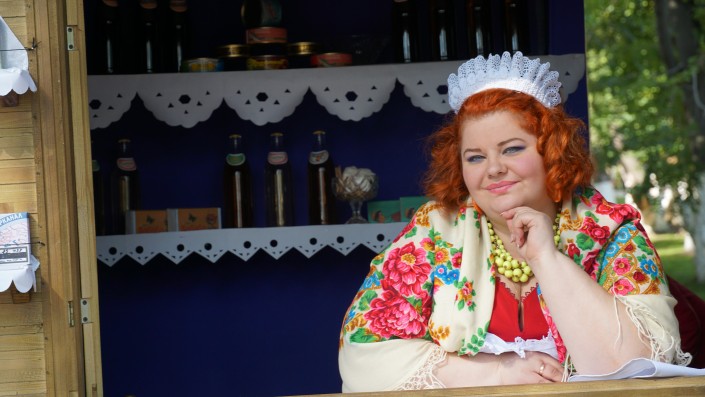 Погружение в 60-е начинается сразу же на входе в парк. Здесь расположились парни с гитарами, одетые по моде того периода.